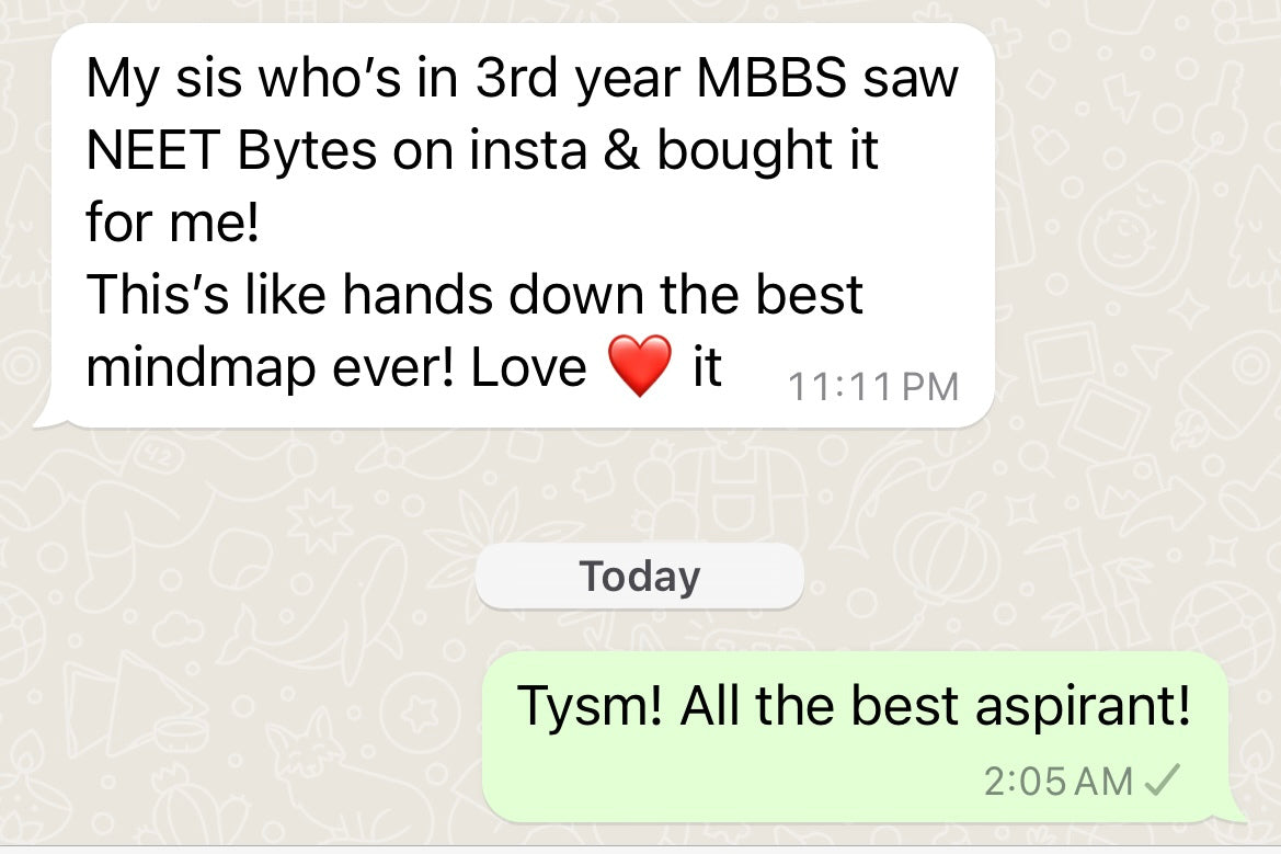One of our NEET aspirants just wrote the pollen grain mind map (given in NEET Bytes sample picture) & she ended up topping the exam with full marks!